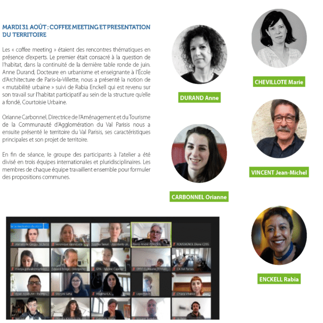 L’atelier 2021 réunira une vingtaine de jeune professionnel.le.s, étudiant.e.s et chercheur.e.s de différents horizons pour une session intensive d’immersion et de réflexions pluridisciplinaires. Durant deux semaines, les participant.e.s auront l’opportunité d’assister à des rencontres, visites, conférences, avant de travailler en équipe pour proposer des projets à différentes échelles du territoire francilien. Ces projets seront présentés devant un jury international composé de spécialistes du sujet et d’acteurs du territoire.